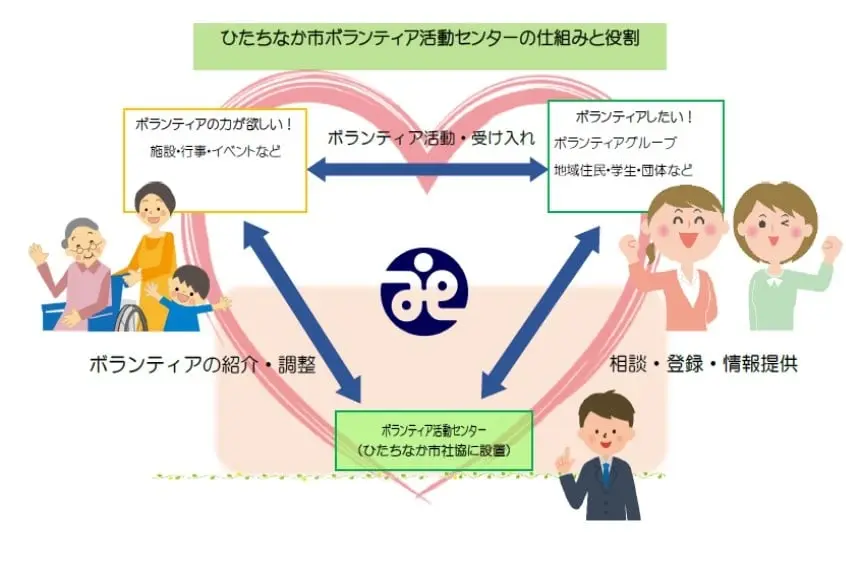 「ボランティアをしたい!」と「ボランティアが必要!」の2つの気持ちをつなげるのが「ボランティア活動センター」です。